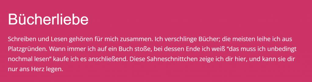 Falls das alles für dich nachvollziehbar, schlüssig und unterstützenswert ist, freue ich mich, wenn du nun in meinem Blog Bücherliebe ein bisschen stöberst und wünsche dir in jedem Fall ein inspirierendes Leseerlebnis. Denn: Was wäre ein Leben ohne Bücher?